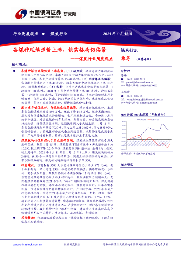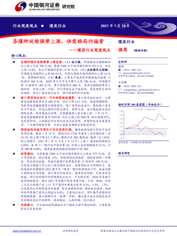 【银河证券】【20210118】中国银河-煤炭行业周度观点:各煤种延续强势上涨,供需格局仍偏紧-14页