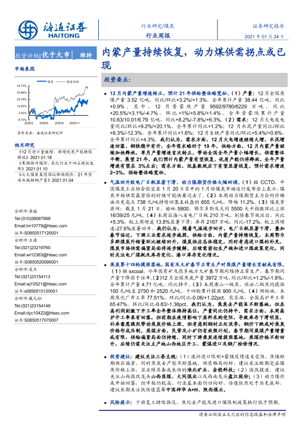 【海通证券】【20210124】20210124-海通证券-煤炭行业周报:内蒙产量持续恢复,动力煤供需拐点或已现-2页