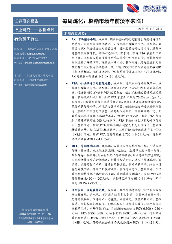 【信达证券】【20210125】每周炼化:聚酯市场年前淡季来临!-8页