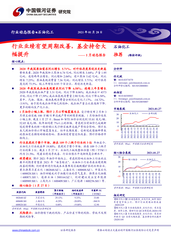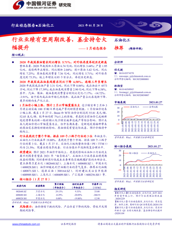 【银河证券】【20210128】中国银河-石油化工1月动态报告:行业业绩有望周期改善,基金持仓大幅提升-22页