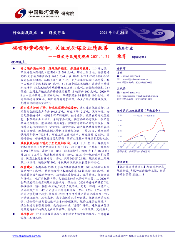 【银河证券】【20210125】煤炭行业周度观点:供需形势略缓和,关注龙头煤企业绩改善-14页