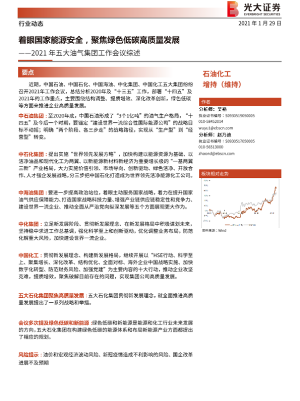 【光大证券】【20210129】2021年五大油气集团工作会议综述-着眼国家能源安全,聚焦绿色低碳高质量发展-10页