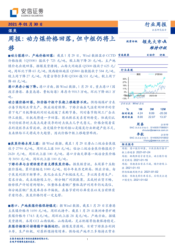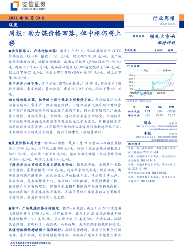 【安信证券】【20210130】20210130-安信证券-煤炭行业周报:动力煤价格回落,但中枢仍将上移-23页