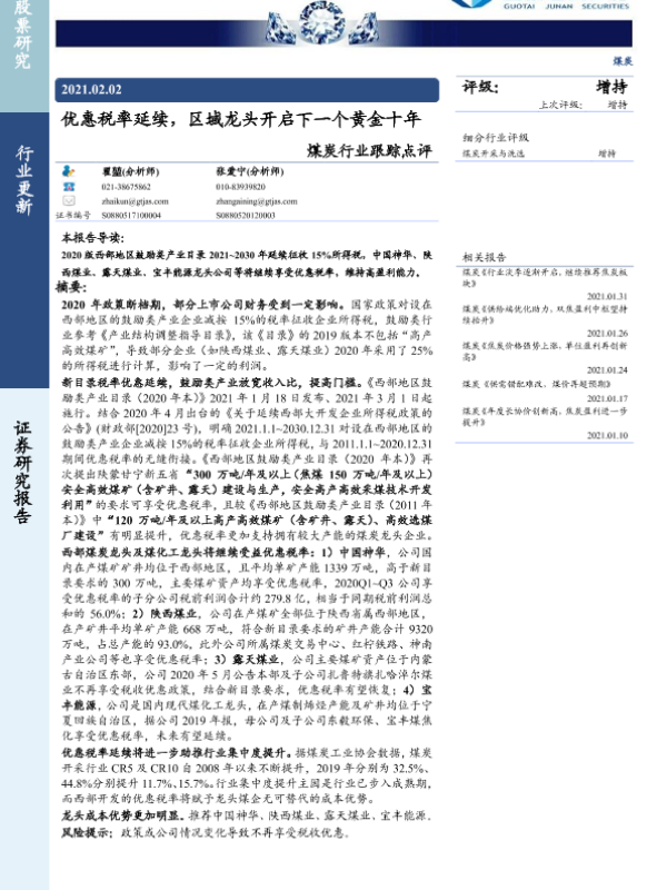 区域龙头 煤炭行业 盈利能力 税收优惠 西部大开发