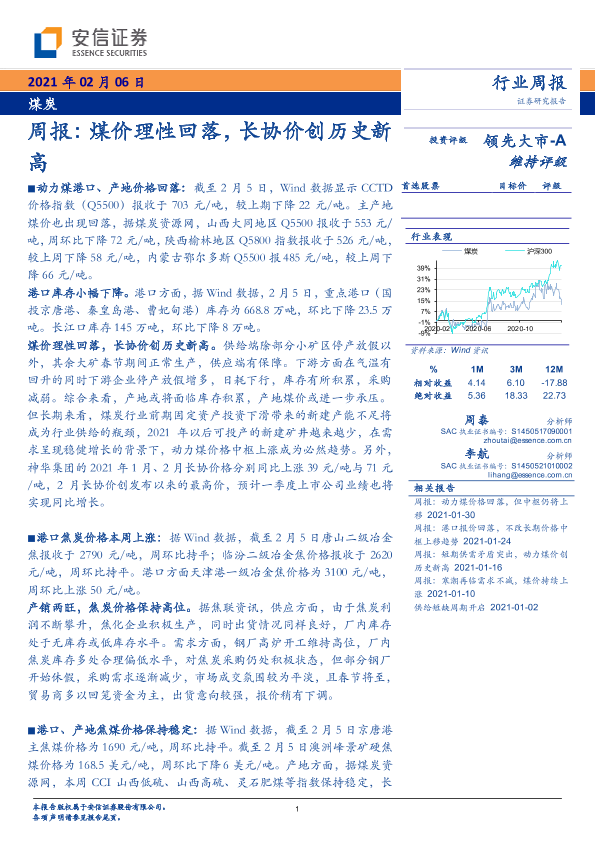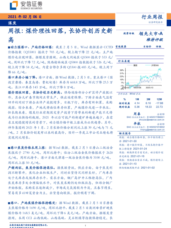 【安信证券】【20210206】20210206-安信证券-煤炭周报:煤价理性回落,长协价创历史新高-22页