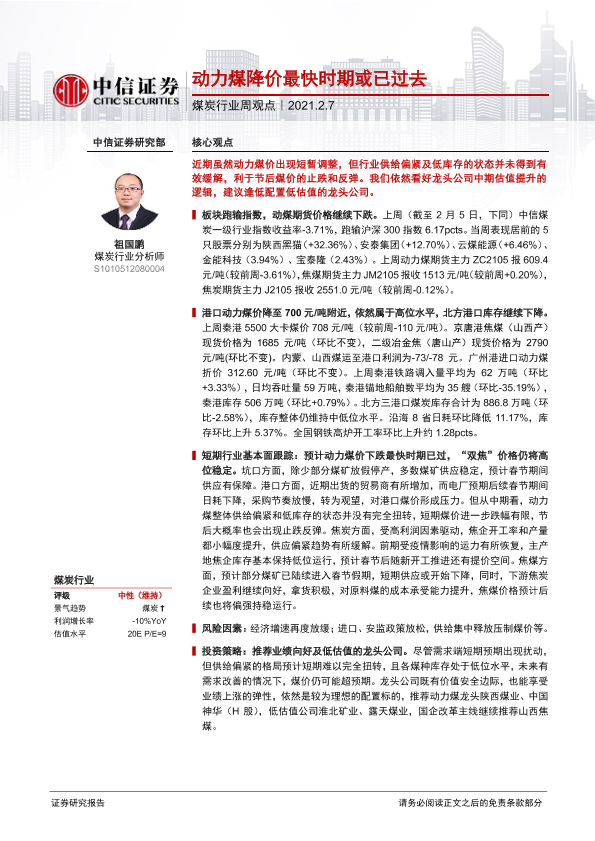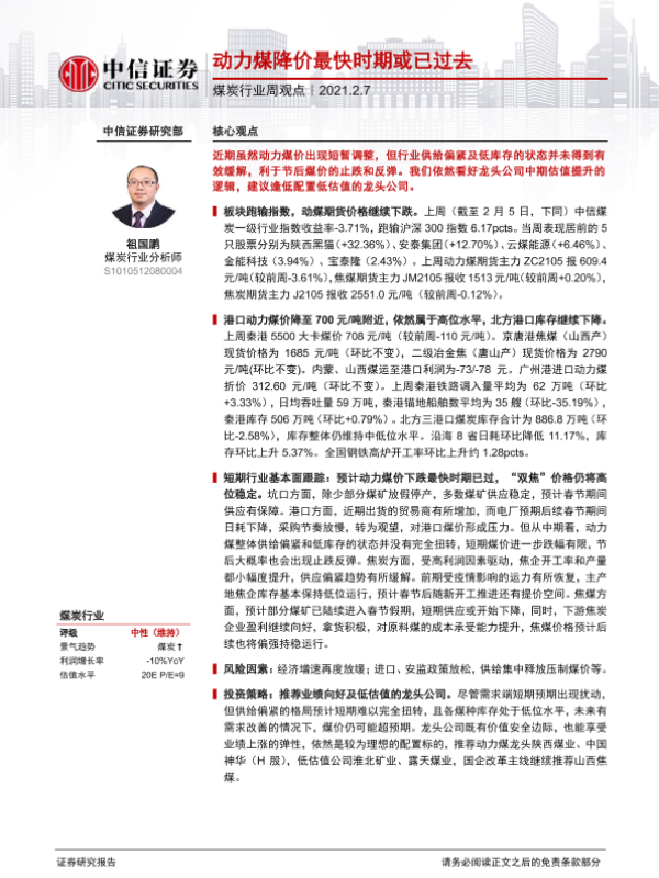 【中信证券】【20210207】20210207-中信证券-煤炭行业周观点:动力煤降价最快时期或已过去-8页