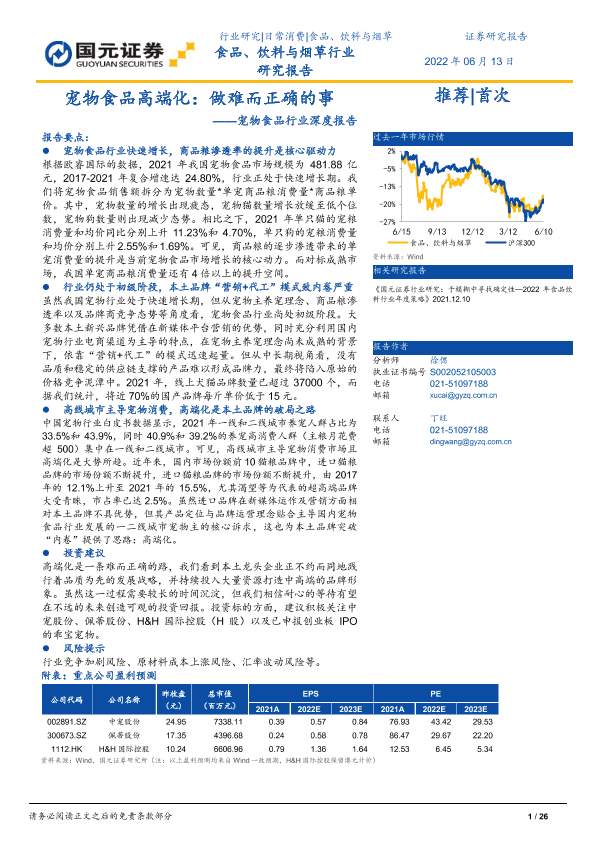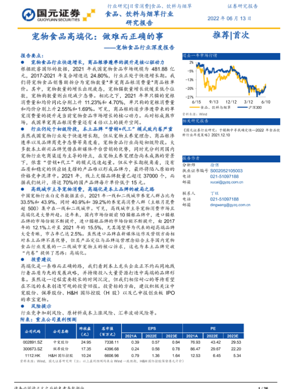 【国元证券】【20220613】宠物食品行业深度报告:宠物食品高端化,做难而正确的事-26页