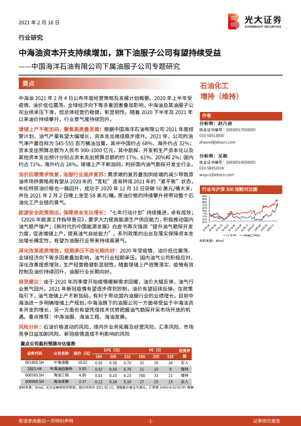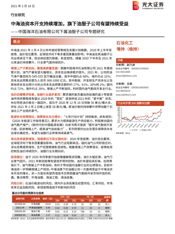 【光大证券】【20210218】中国海洋石油有限公司下属油服子公司专题研究:中海油资本开支持续增加,旗下油服子公司有望持续受益-25页