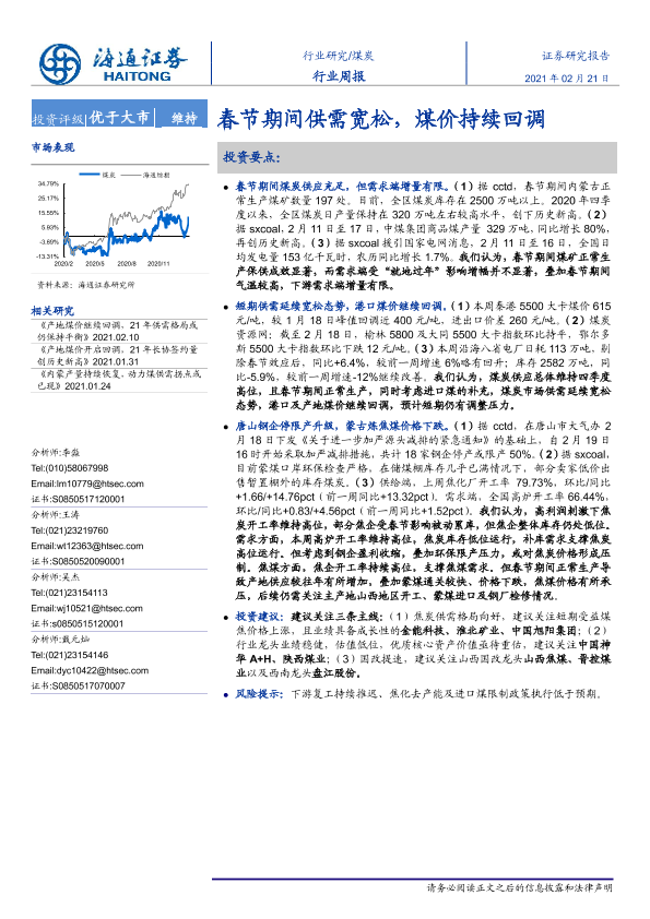 【海通证券】【20210221】煤炭行业周报:春节期间供需宽松,煤价持续回调-2页