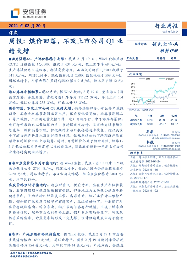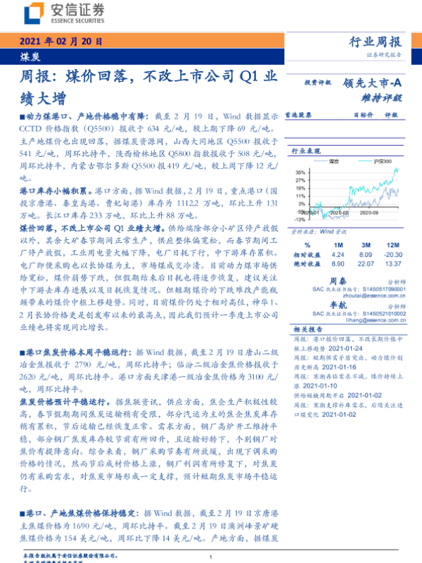 【安信证券】【20210220】20210220-安信证券-煤炭周报:煤价回落,不改上市公司Q1业绩大增-19页