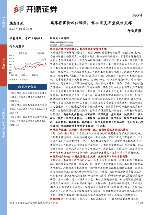【开源证券】【20210227】高库存煤价回归绿区,需求恢复有望提供支撑-20页