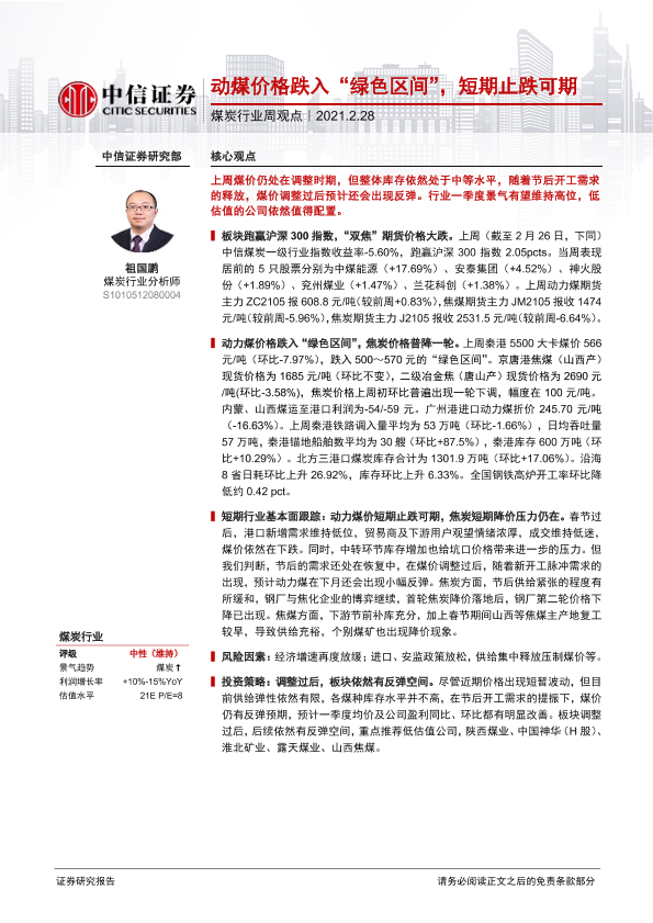 【中信证券】【20210228】20210228-中信证券-煤炭行业周观点:动煤价格跌入“绿色区间”,短期止跌可期-8页
