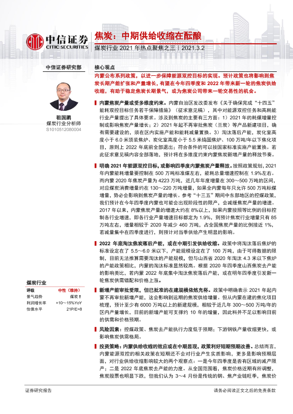 【中信证券】【20210302】煤炭行业2021年热点聚焦之三:焦炭:中期供给收缩在酝酿-3页