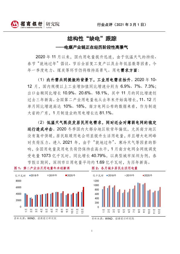 【招商银行】【20210301】电煤产业链正在经历阶段性高景气:结构性“缺电”跟踪-4页