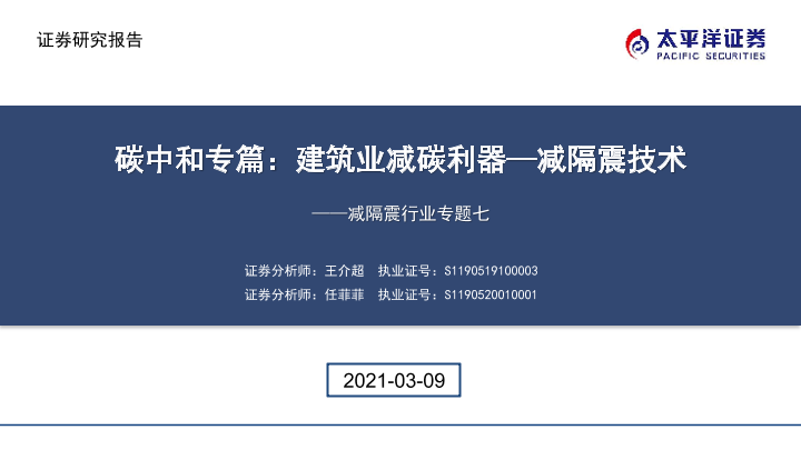 【太平洋证券】【20210309】20210309-太平洋-减隔震行业专题七:碳中和专篇:建筑业减碳利器—减隔震技术-20页