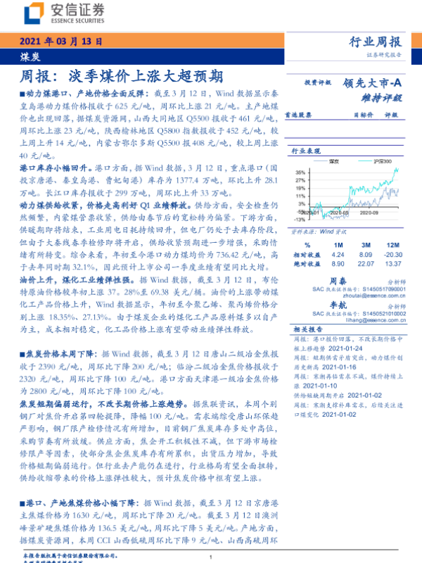 【安信证券】【20210313】20210313-安信证券-煤炭周报:淡季煤价上涨大超预期-22页