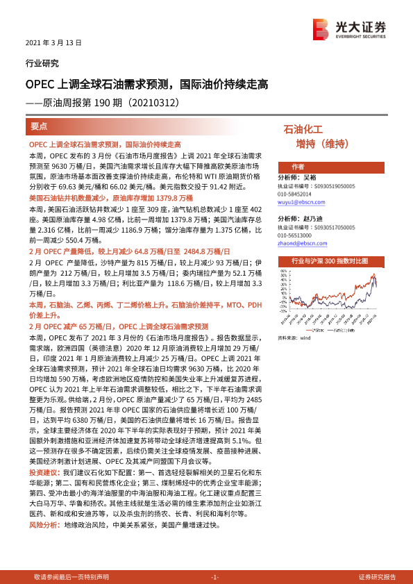 【光大证券】【20210313】原油周报第190期:OPEC上调全球石油需求预测,国际油价持续走高-11页
