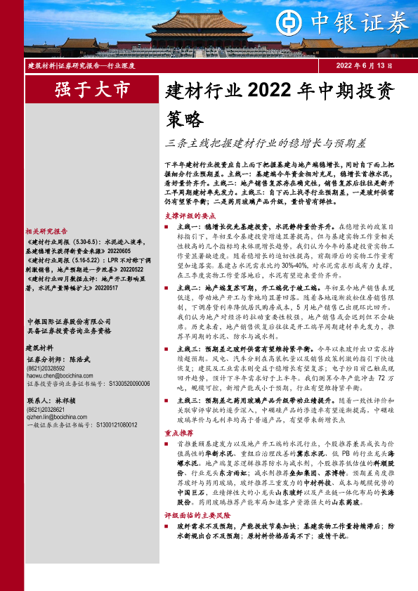 【中银证券】【20220613】建材行业2022年中期投资策略:三条主线把握建材行业的稳增长与预期差-38页