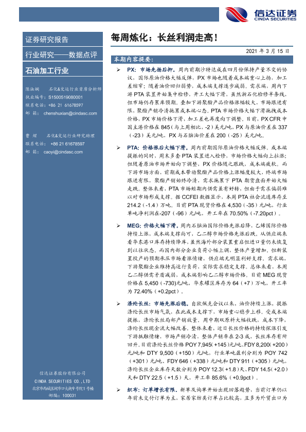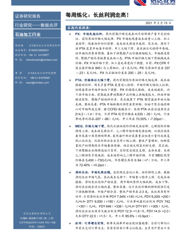【信达证券】【20210315】每周炼化:长丝利润走高!-9页