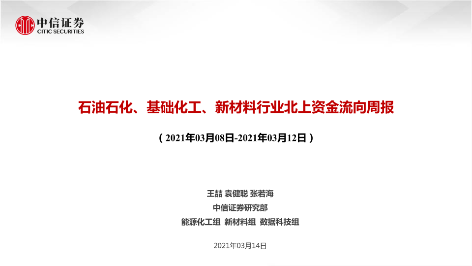 【中信证券】【20210314】石油石化、基础化工、新材料行业北上资金流向周报-31页