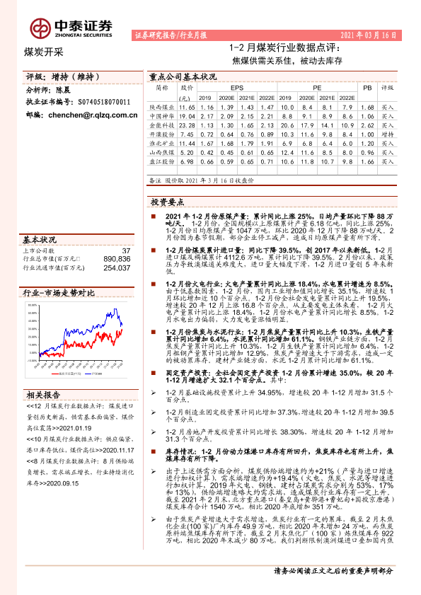 【中泰证券】【20210316】20210316-中泰证券-1-2月煤炭行业数据点评:焦煤供需关系佳,被动去库存-6页