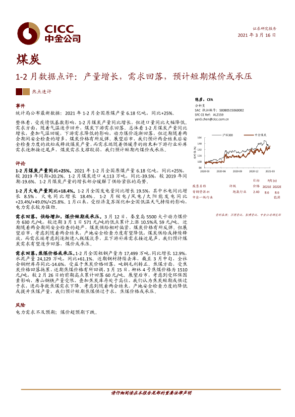【中金公司】【20210316】煤炭1-2月数据点评:产量增长,需求回落,预计短期煤价或承压-4页
