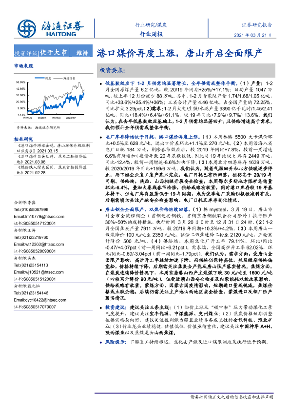 【海通证券】【20210321】20210321-海通证券-煤炭行业周报:港口煤价再度上涨,唐山开启全面限产-2页
