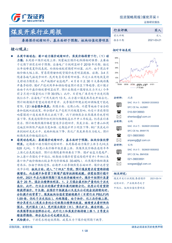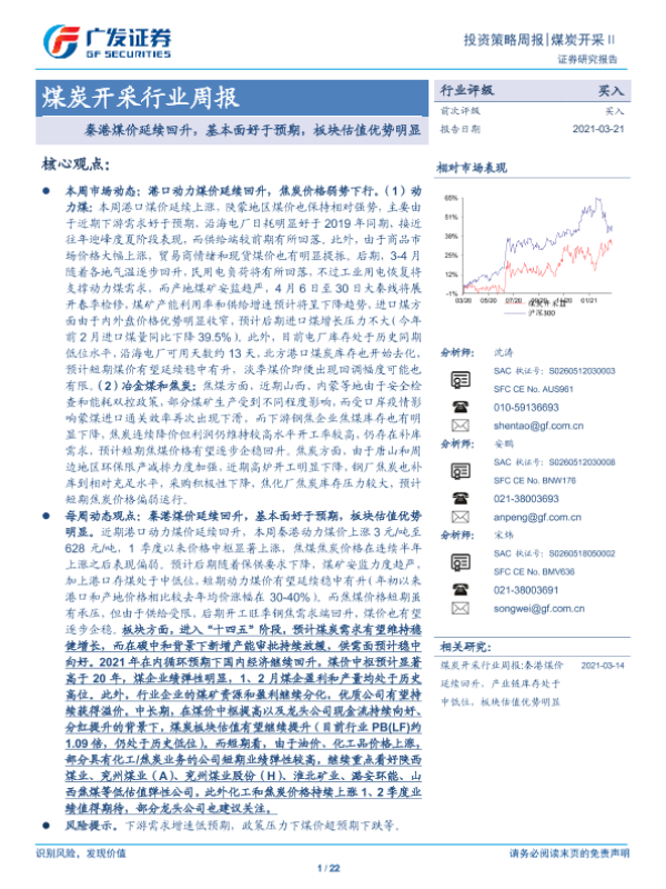 【广发证券】【20210321】20210321-广发证券-煤炭开采行业周报:秦港煤价延续回升,基本面好于预期,板块估值优势明显-22页