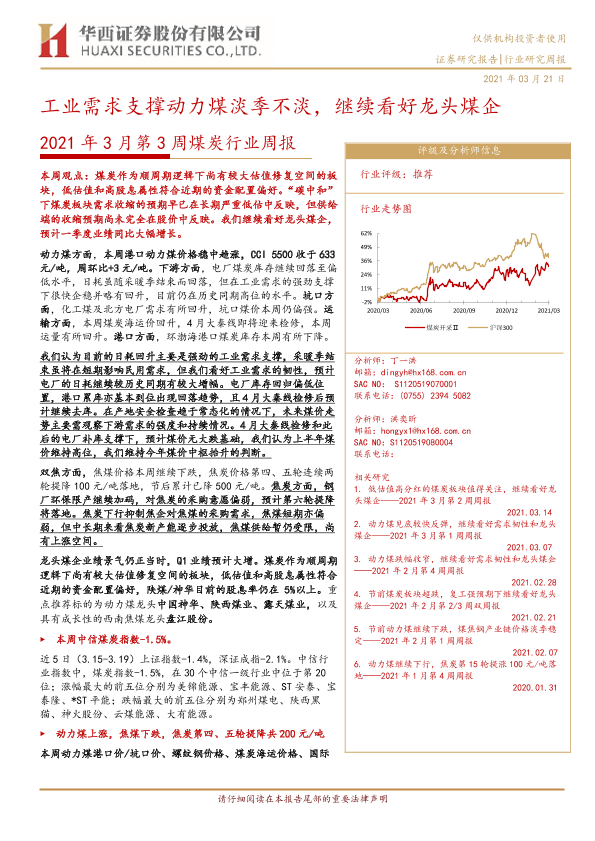 【华西证券】【20210321】2021年3月第3周煤炭行业周报:工业需求支撑动力煤淡季不淡,继续看好龙头煤企-22页