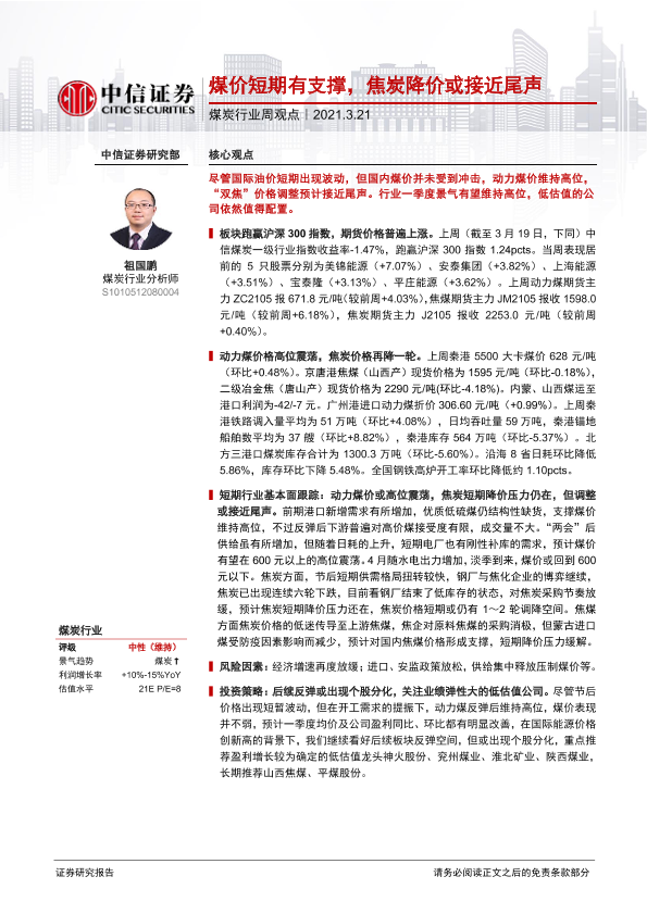 【中信证券】【20210321】20210321-中信证券-煤炭行业周观点:煤价短期有支撑,焦炭降价或接近尾声-8页
