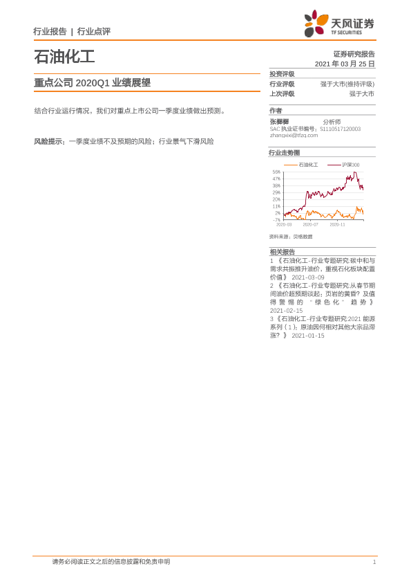 【天风证券】【20210325】石油化工:重点公司2020Q1业绩展望-3页