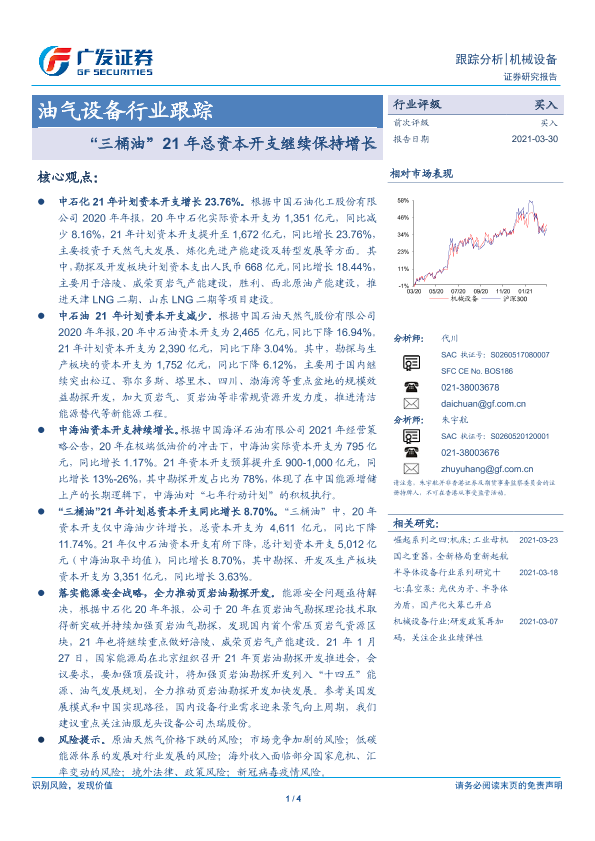 【广发证券】【20210330】油气设备行业跟踪:“三桶油”21年总资本开支继续保持增长-4页