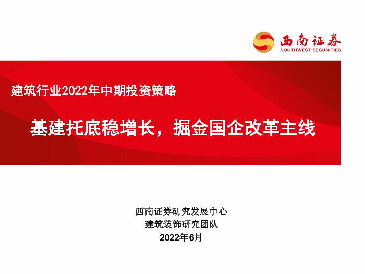 【西南证券】【20220615】建筑行业2022年中期投资策略:基建托底稳增长,掘金国企改革主线-40页