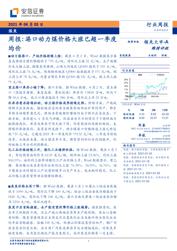 【安信证券】【20210403】20210403-安信证券-煤炭周报:港口动力煤价格大涨已超一季度均价-22页