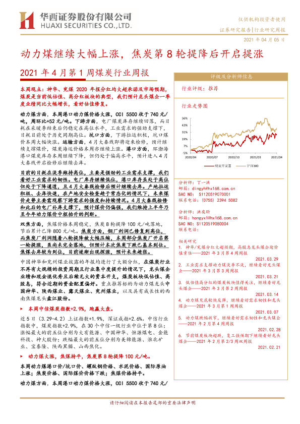 【华西证券】【20210405】2021年4月第1周煤炭行业周报:动力煤继续大幅上涨,焦炭第8轮提降后开启提涨-22页