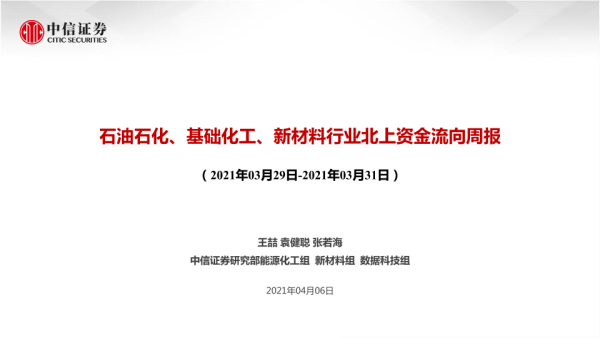 【中信证券】【20210406】石油石化、基础化工、新材料行业北上资金流向周报-31页
