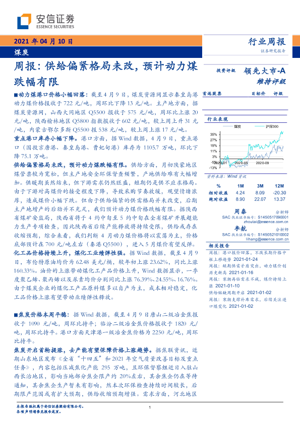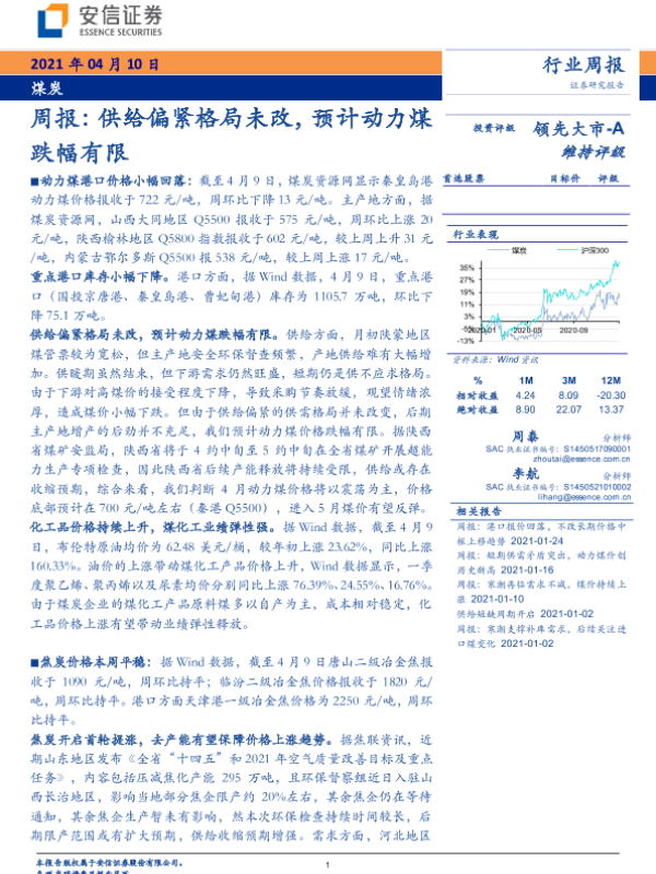 【安信证券】【20210410】20210410-安信证券-煤炭行业周报:供给偏紧格局未改,预计动力煤跌幅有限-22页