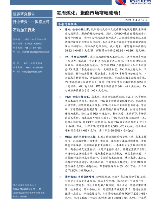 【信达证券】【20210412】每周炼化:聚酯市场窄幅波动!-9页