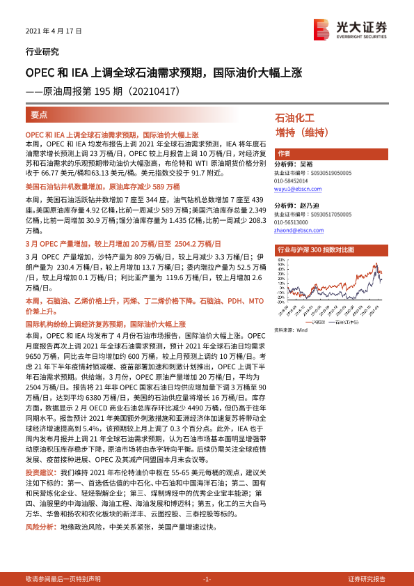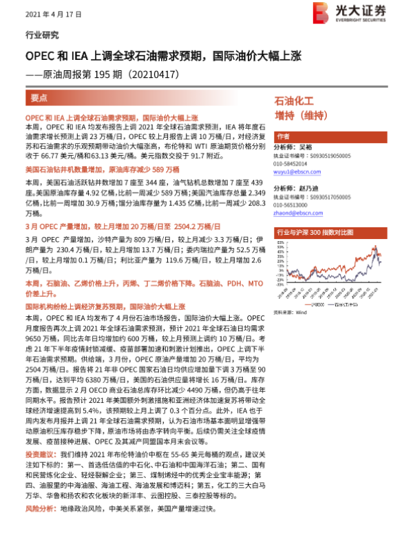 【光大证券】【20210417】OPEC和IEA上调全球石油需求预期,国际油价大幅上涨——原油周报第195期-11页