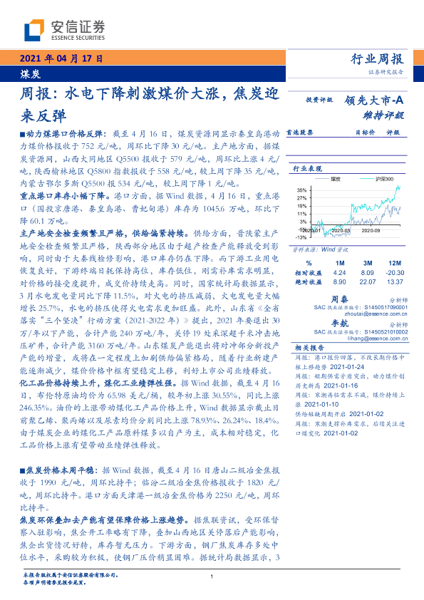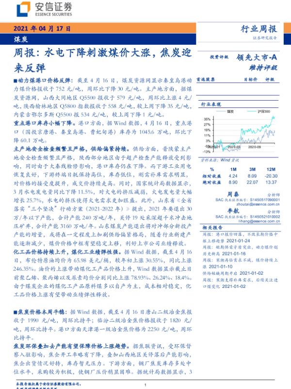 【安信证券】【20210417】20210417-安信证券-煤炭行业周报:水电下降刺激煤价大涨,焦炭迎来反弹-23页