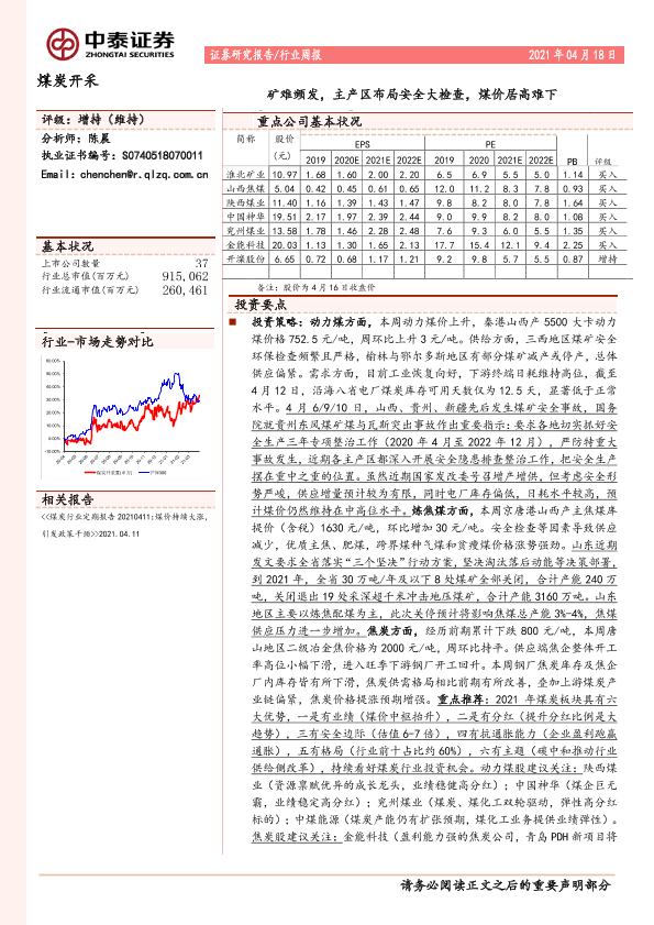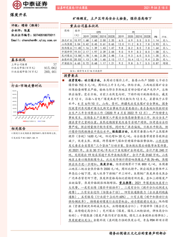 【中泰证券】【20210418】中泰证券-煤炭开采行业周报:矿难频发,主产区布局安全大检查,煤价居高难下-15页