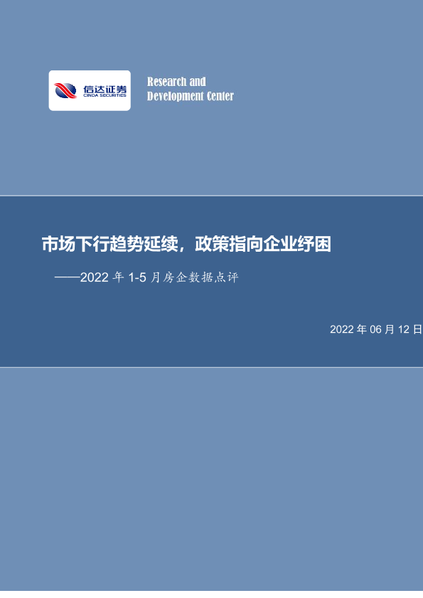 【信达证券】【20220612】市场下行趋势延续,政策指向企业纾困——2022年1-5月房企数据点评-22页