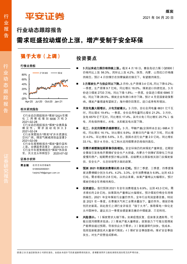 【平安证券】【20210420】20210420-平安证券-煤炭行业:需求旺盛拉动煤价上涨,增产受制于安全环保-12页