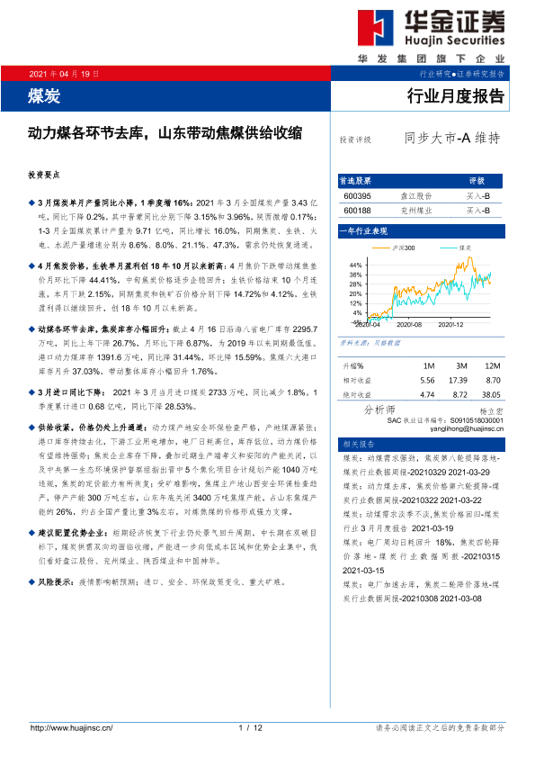 【华金证券】【20210419】煤炭行业月度报告:动力煤各环节去库,山东带动焦煤供给收缩-12页