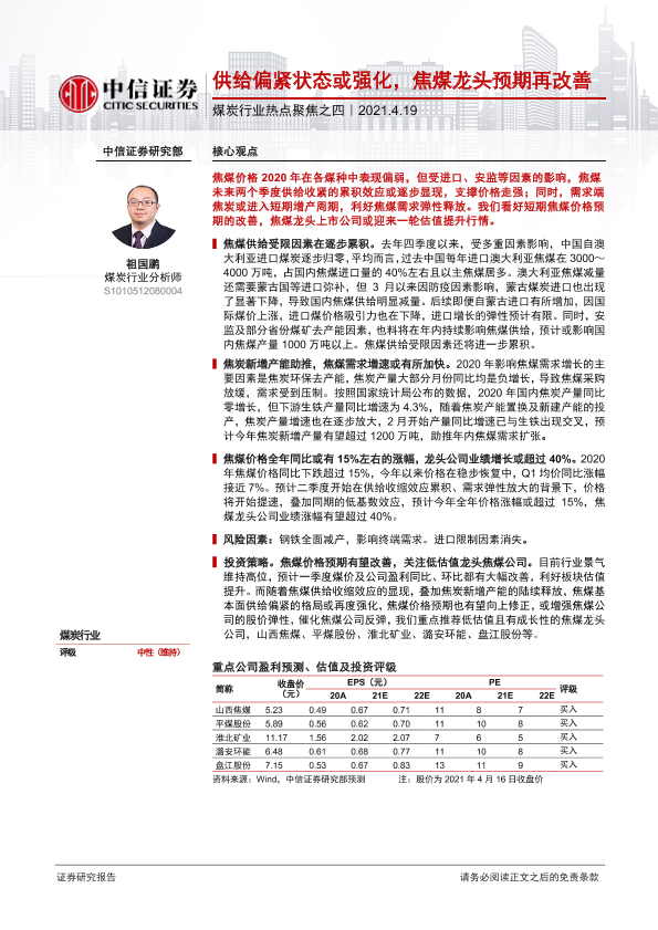 【中信证券】【20210419】供给偏紧状态或强化,焦煤龙头预期再改善-12页