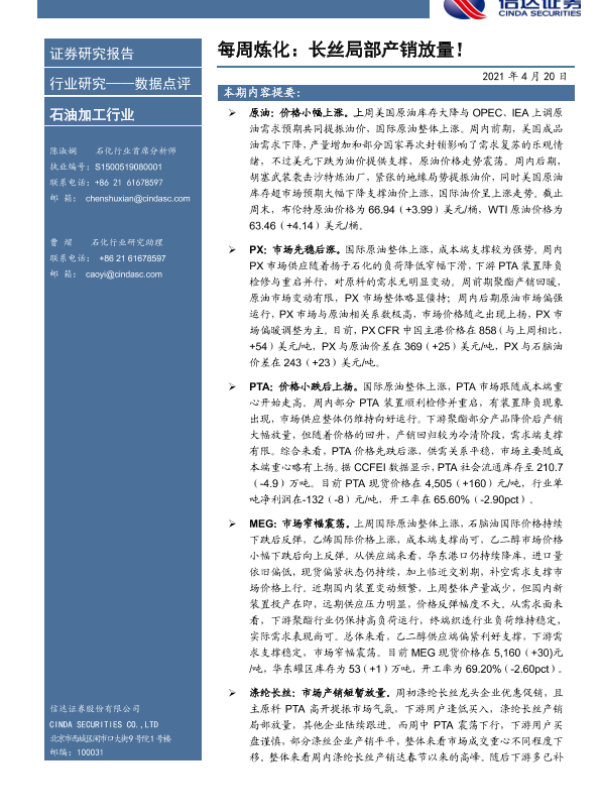 【信达证券】【20210420】每周炼化:长丝局部产销放量!-9页