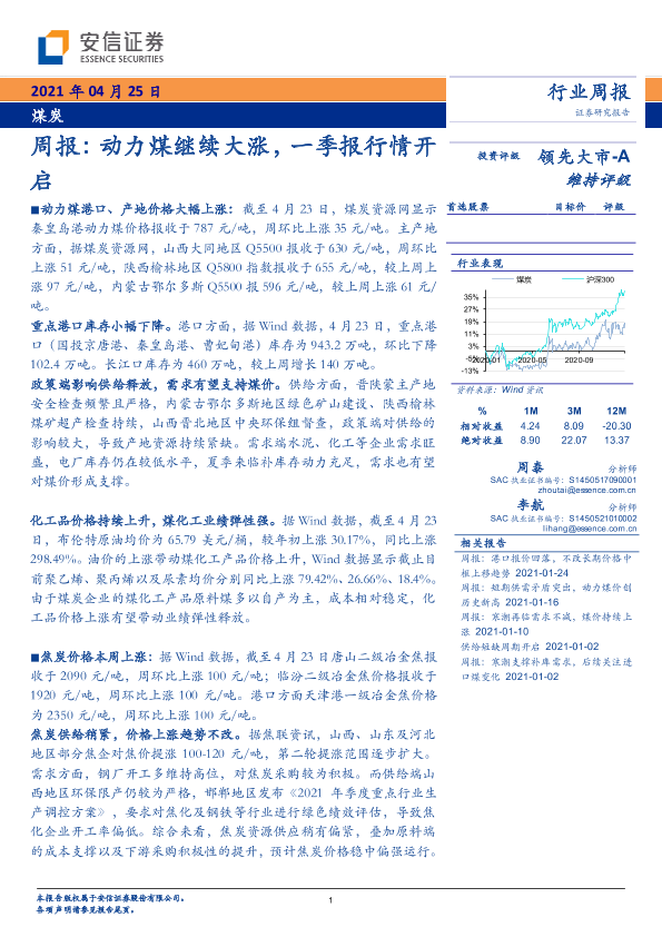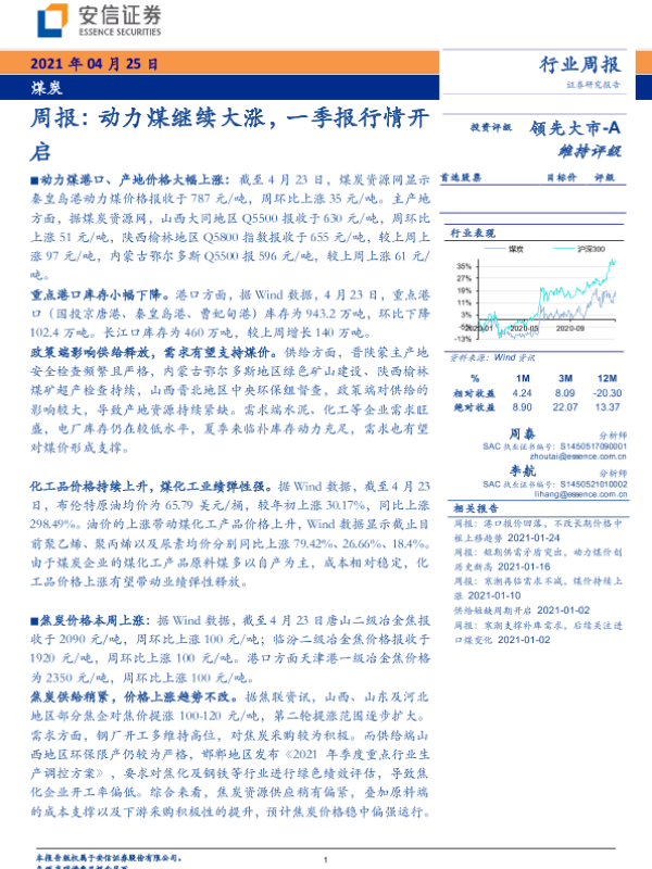【安信证券】【20210425】20210425-安信证券-煤炭周报:动力煤继续大涨,一季报行情开启-23页