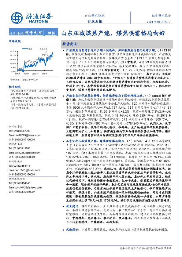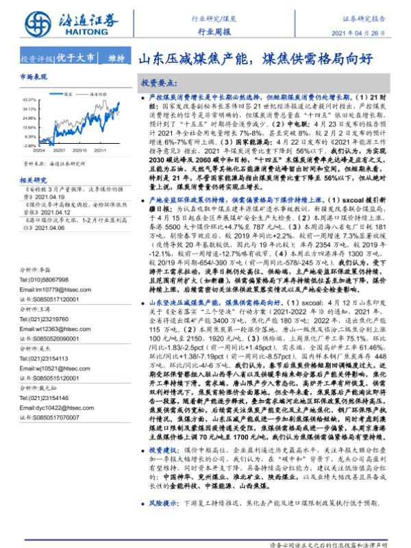 【海通证券】【20210426】20210426-海通证券-煤炭行业周报:山东压减煤焦产能,煤焦供需格局向好-2页