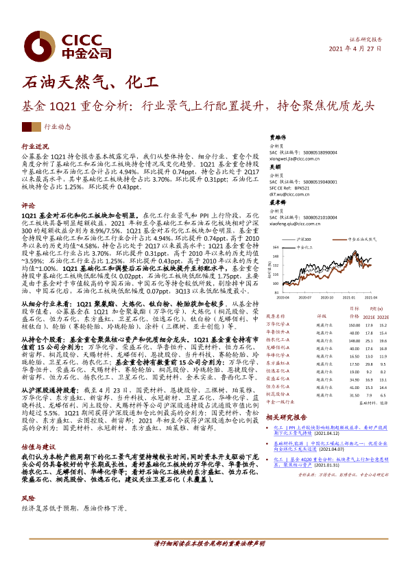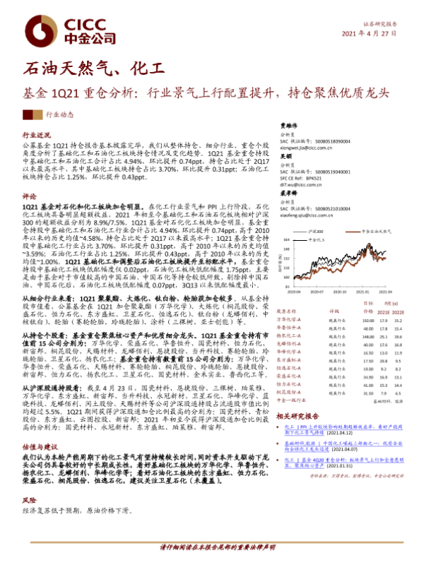 化工 基金持仓 石油天然气 行业景气 龙头公司