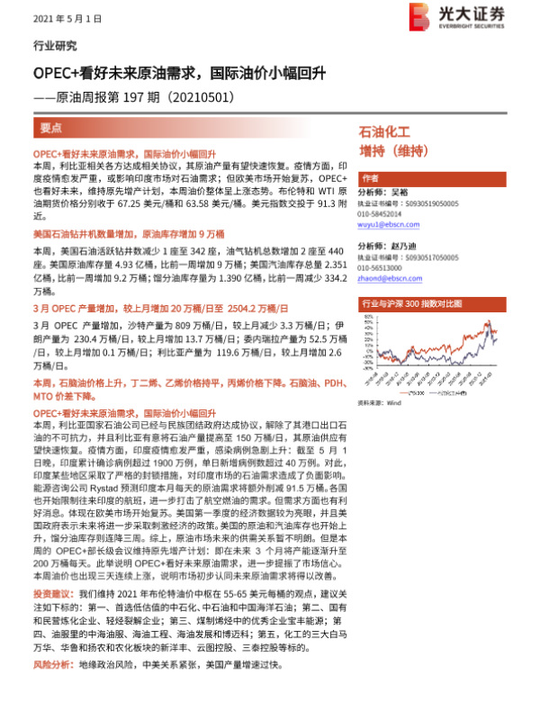 【光大证券】【20210501】OPEC+看好未来原油需求,国际油价小幅回升-11页